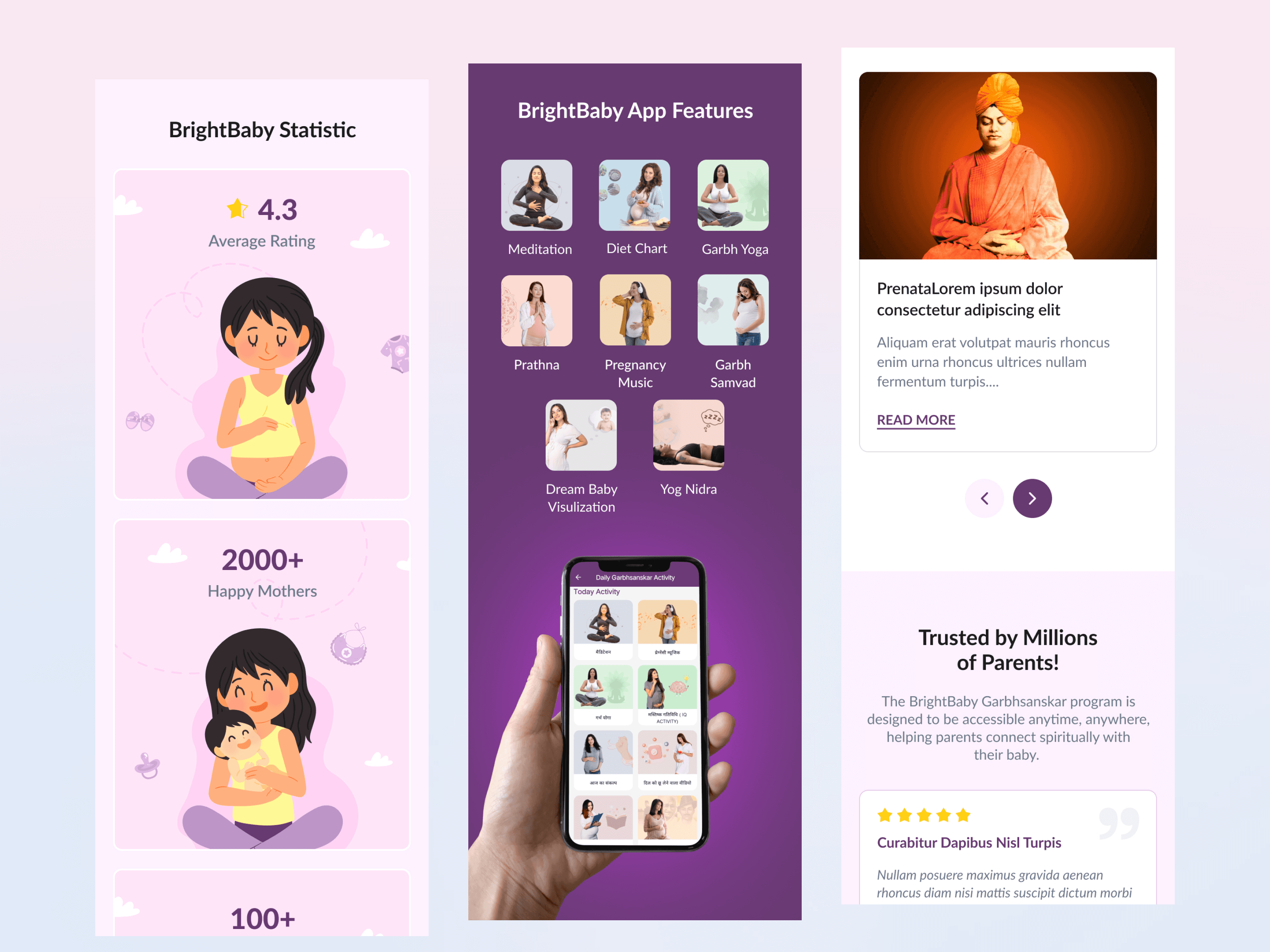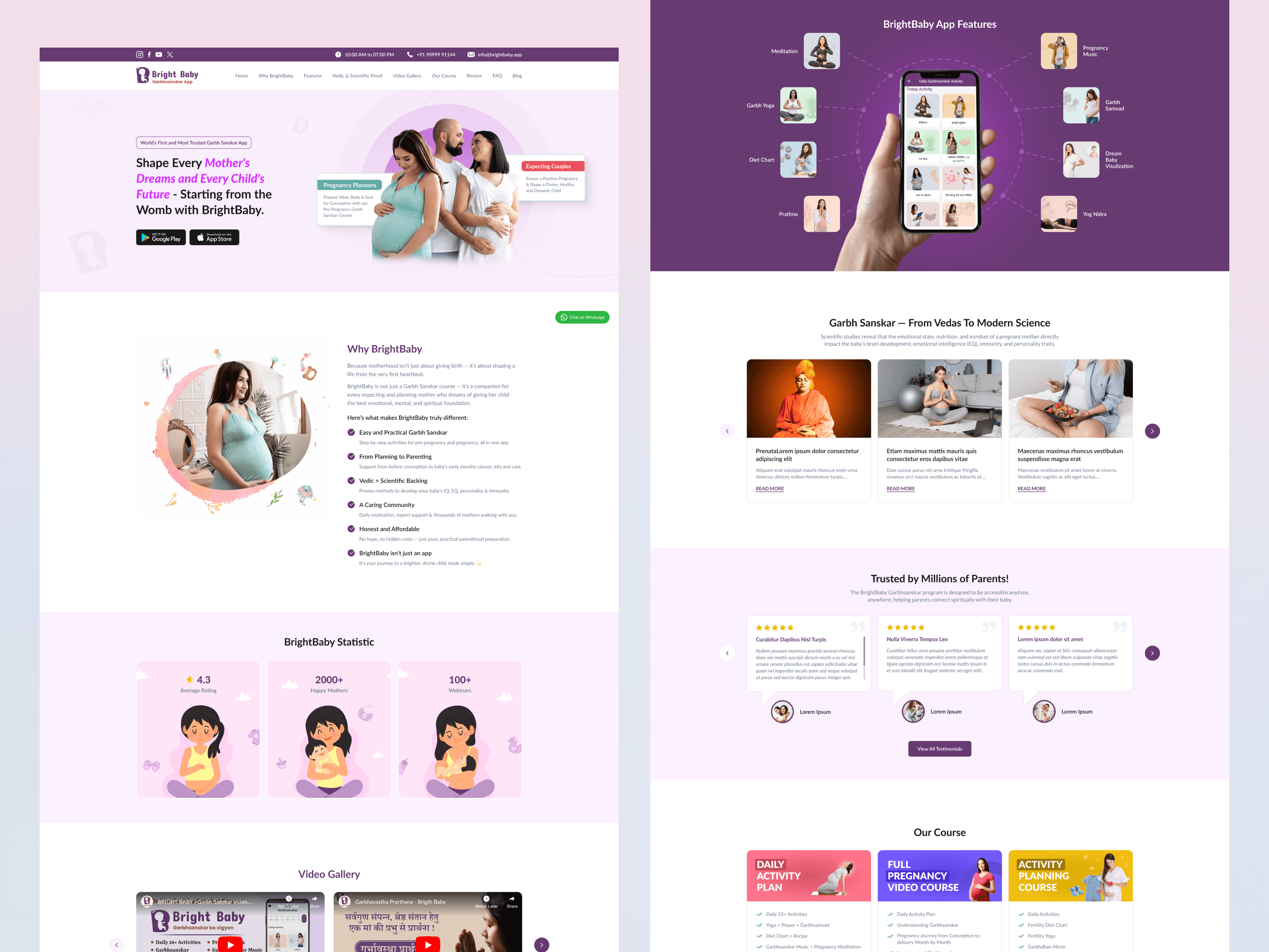 BrightBaby is a thoughtfully designed web experience aimed at helping parents effortlessly track their baby’s daily activities, sleep, feeding, and milestones. The project addressed the challenge of overly complex parenting apps by creating a simple, intuitive, and emotionally warm interface that works even for sleep-deprived users. Through a soft color system, friendly visuals, and well-structured user flows, the design transforms routine tracking into a smooth and stress-free experience. The final outcome is a user-centric website that feels trustworthy, easy to use, and visually delightful — making parenting a little more organized and joyful.